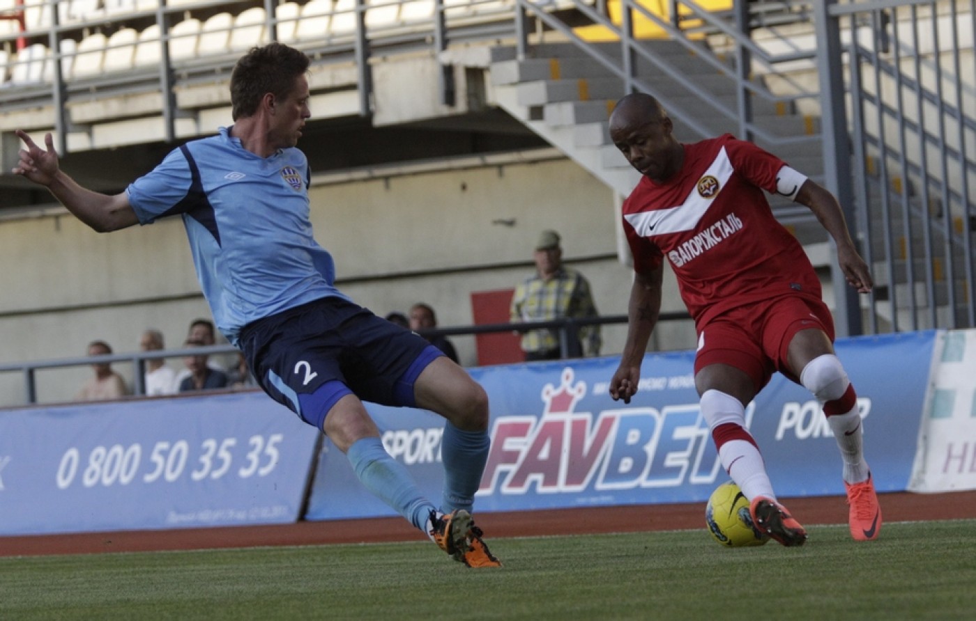 Обрели результат усилия запорожцев на тридцать восьмой минуте, когда гости пропустили контратаку: Сидорчук на скорости прошел с мячом метров двадцать, выполнил передачу на левый край, где Цуриков, вовремя увидев на линии вратарской Белика, прострелил, а автор пента-трика в матче прошлого тура промахнуться с такого расстояния не мог – 1:0!